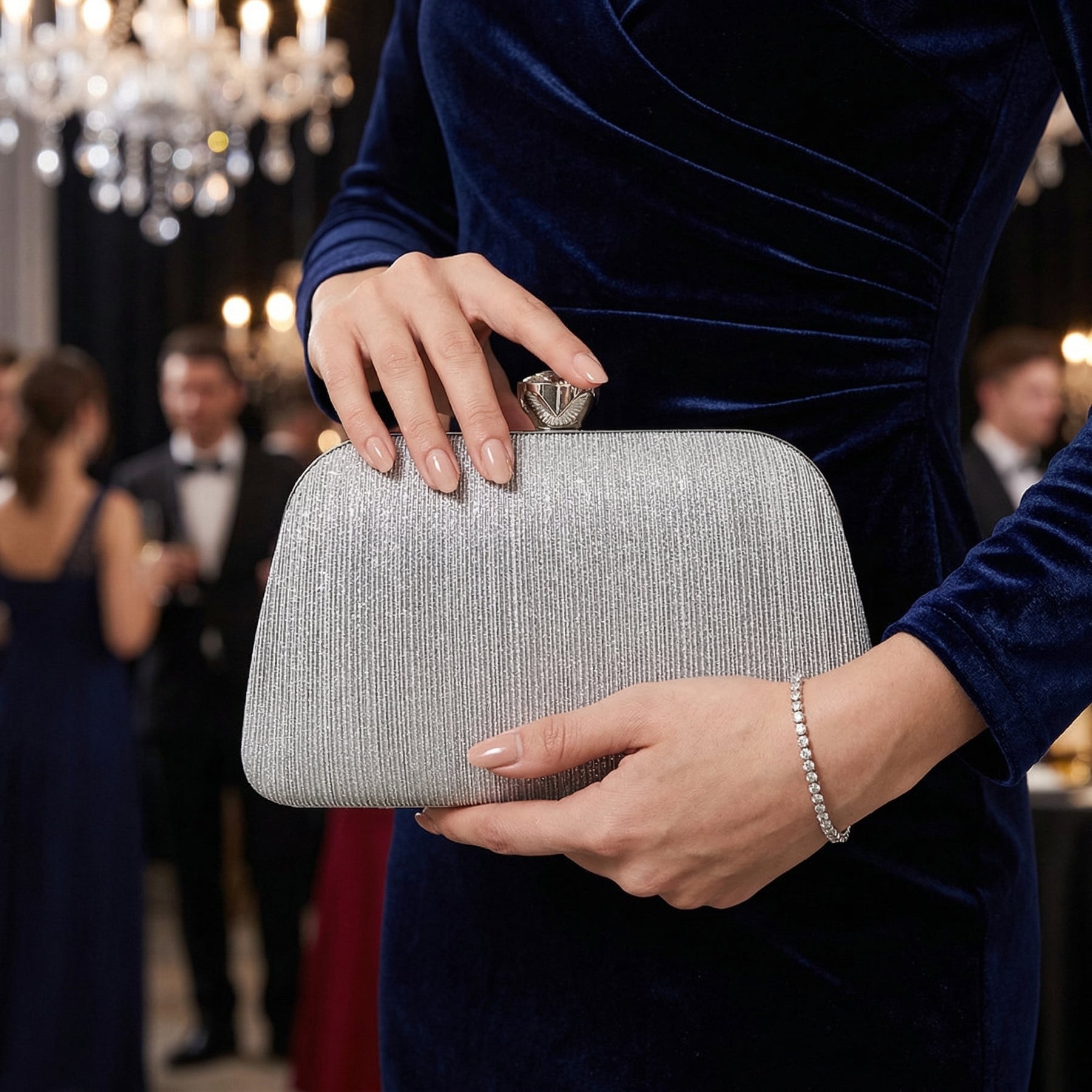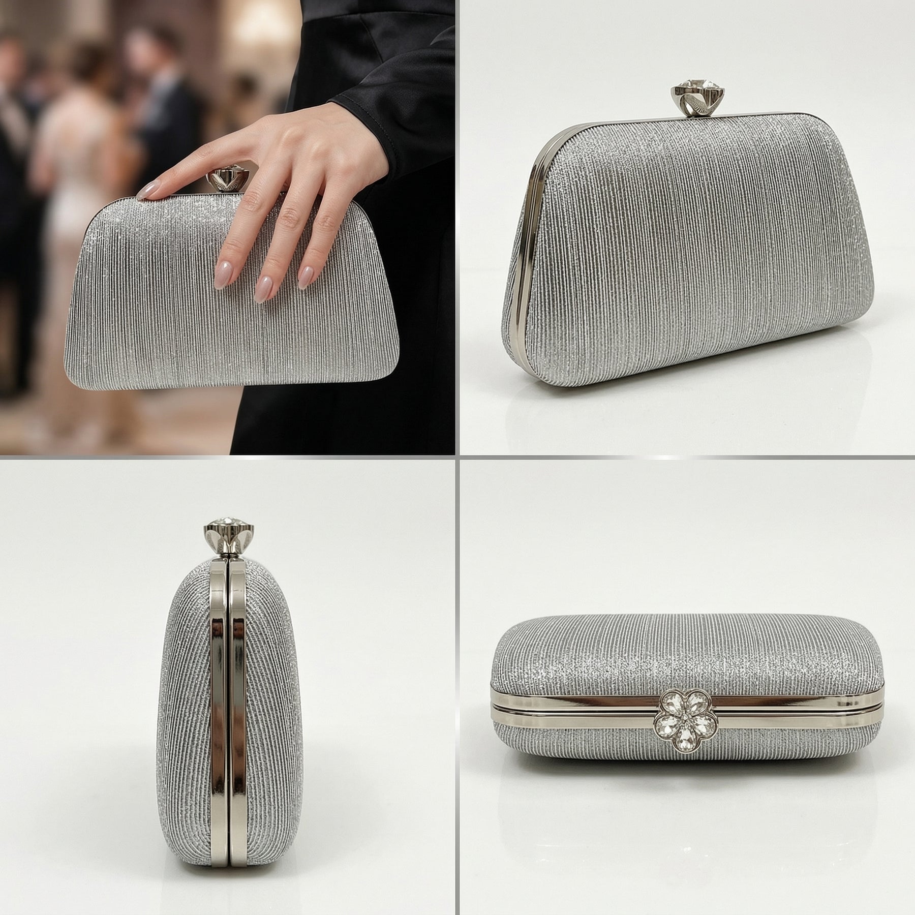 Whether you're attending a wedding, cocktail party, gala, prom, or formal dinner, this timeless clutch complements a wide range of outfits from elegant gowns to chic cocktail dresses. Its classic silver tone makes it a versatile accessory that pairs effortlessly with different colours and styles.