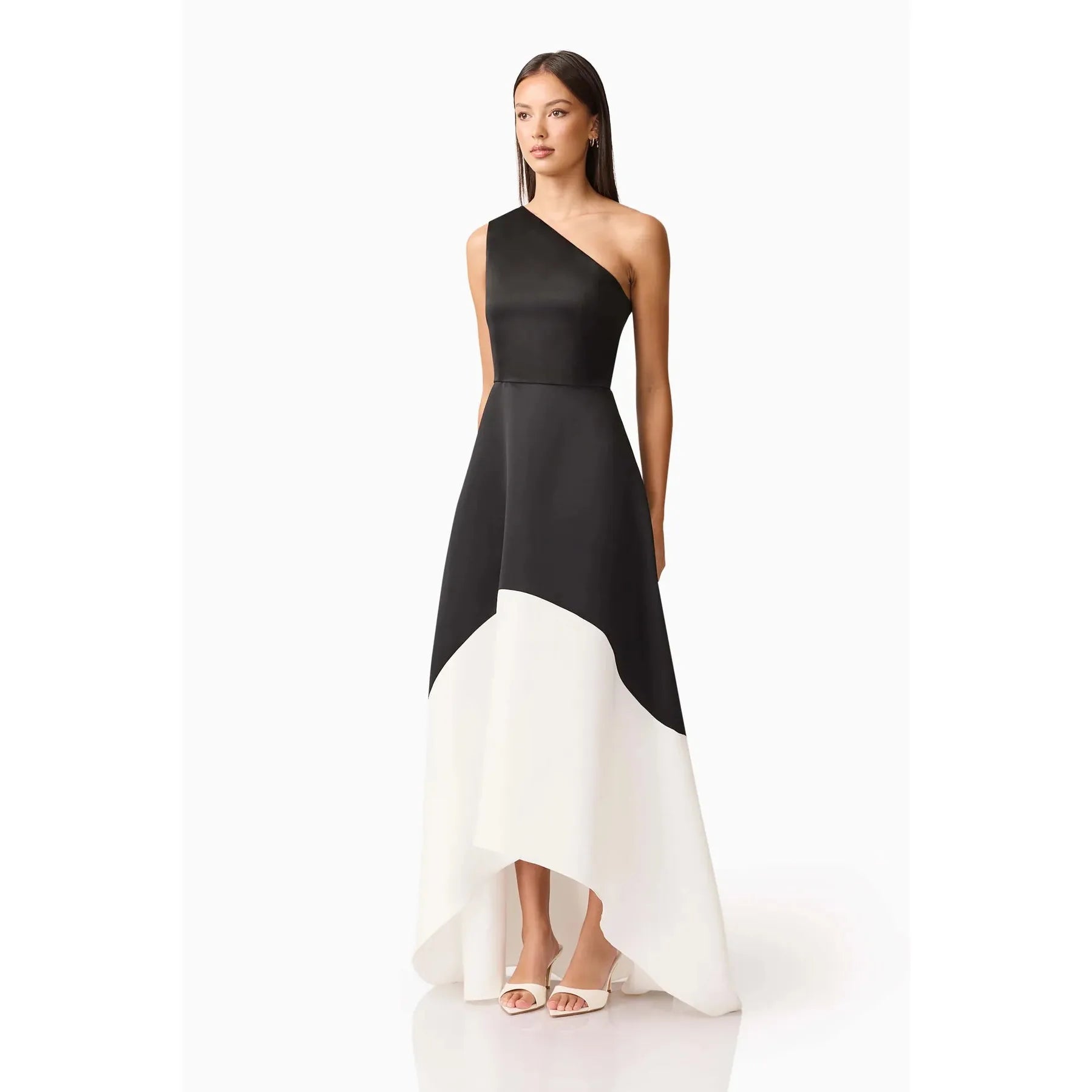 Dramatic yet refined, the Sorrel One Shoulder Gown in Black & White is a modern evening statement with architectural flair. Designed with a sleek one shoulder neckline, this gown plays with contrast and silhouette, blending bold monochrome tones in an elegantly sculpted form.