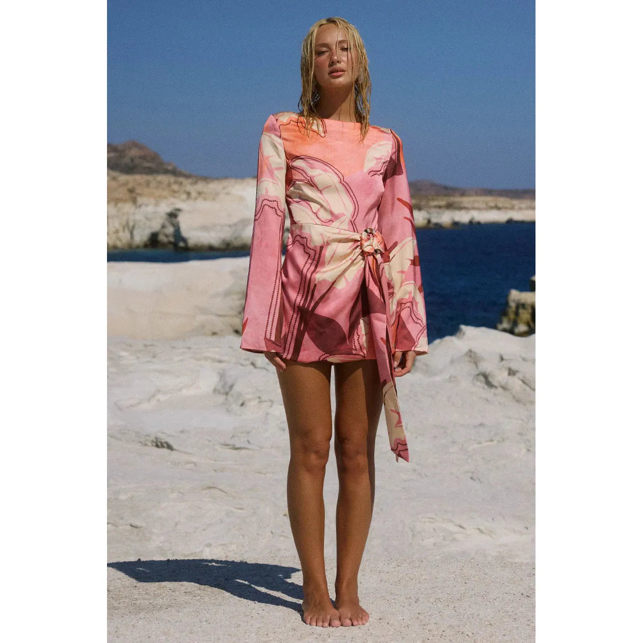 A chic beach to bar look, our Kaeli Long Sleeve Mini Dress features a relaxed silhouette in a breezy fabric with our new Kaeli Berry print.
