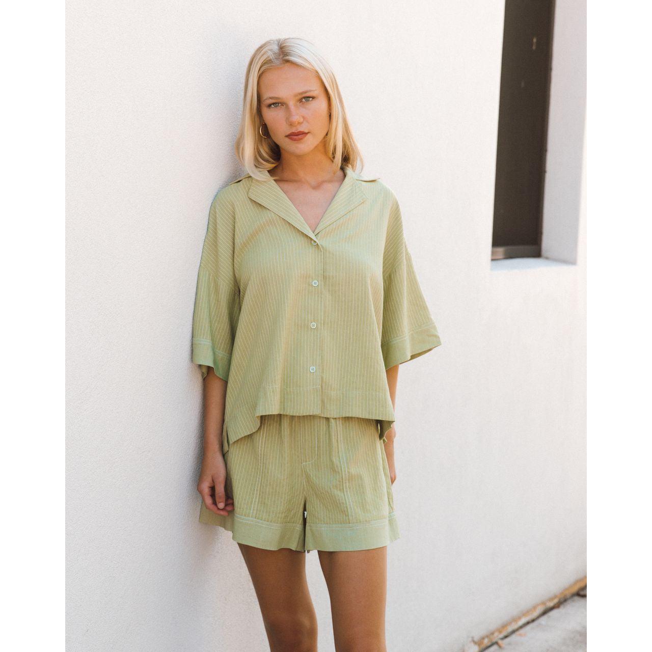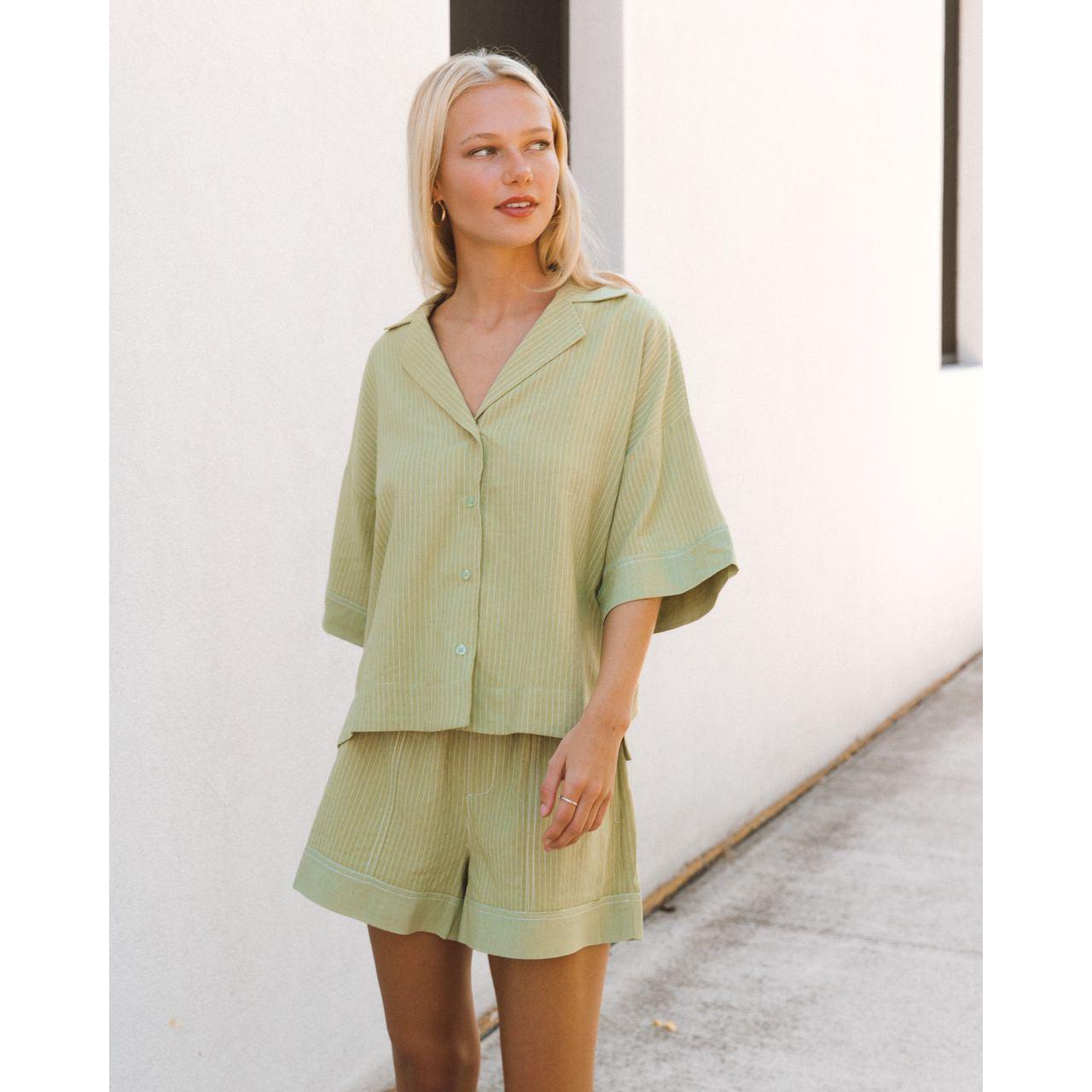 Effortless and breathable, this linen set is designed for warm-weather comfort with a polished finish. The short-sleeve top features a relaxed fit that drapes naturally, while the matching shorts are finished with an elasticated waistband for easy wear and all-day comfort.