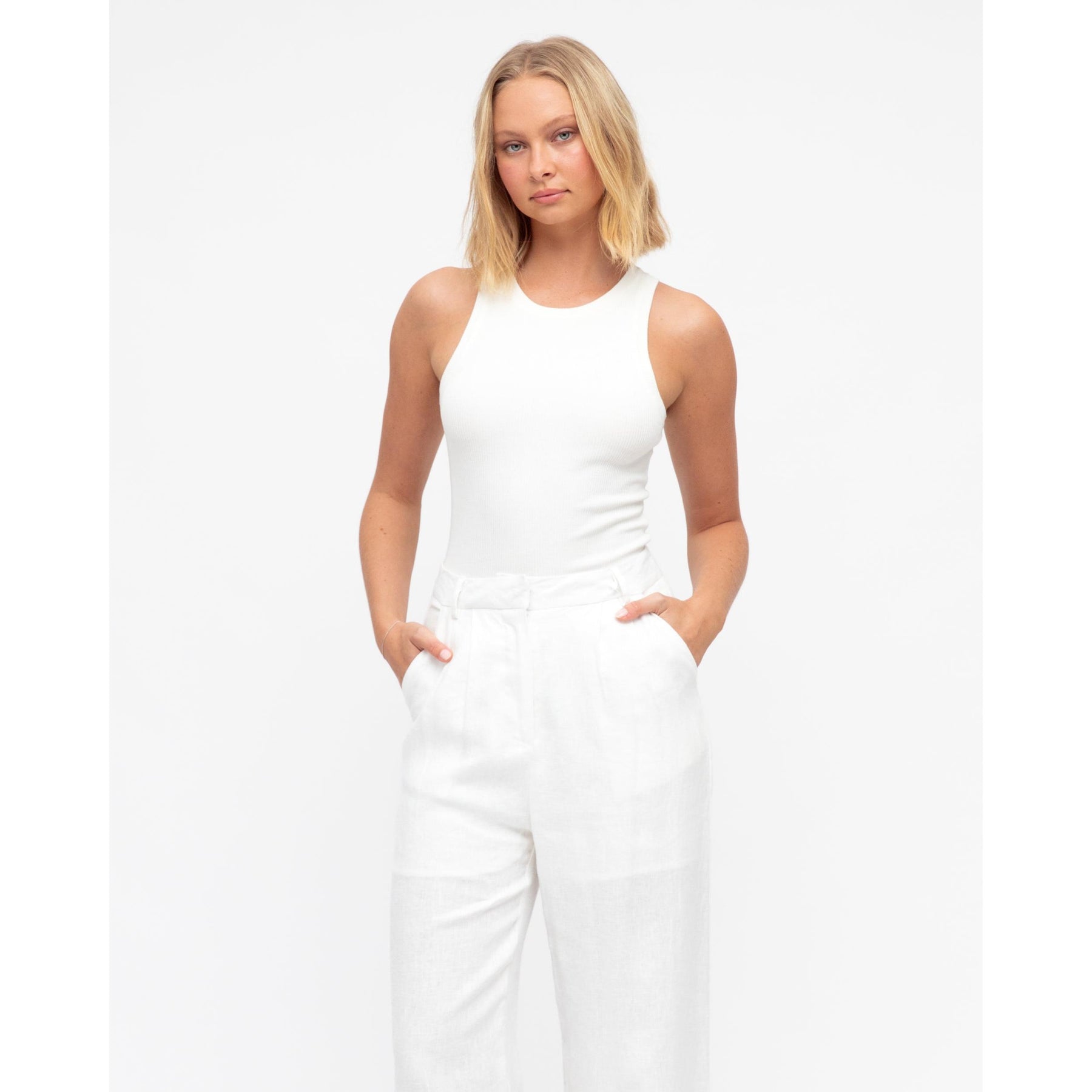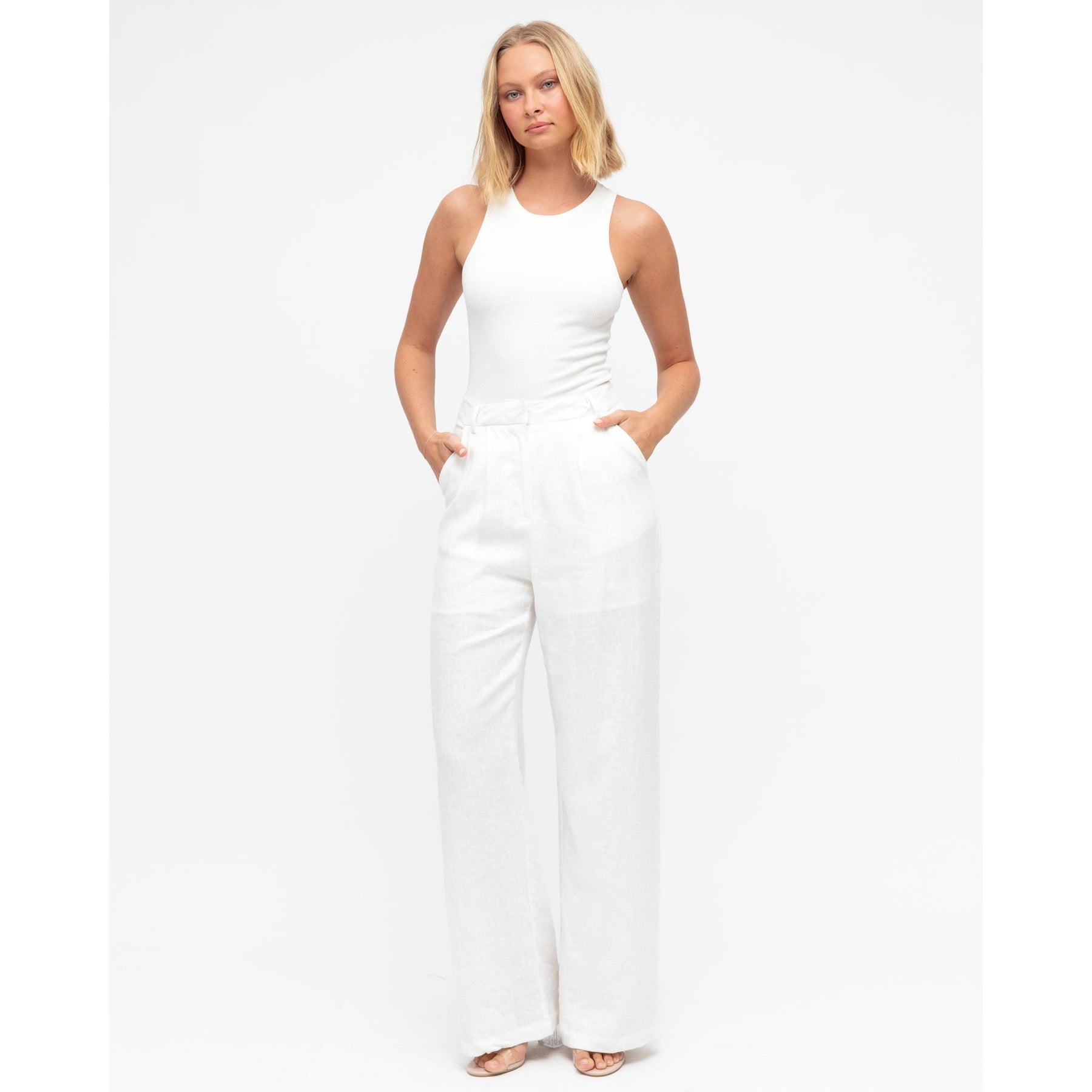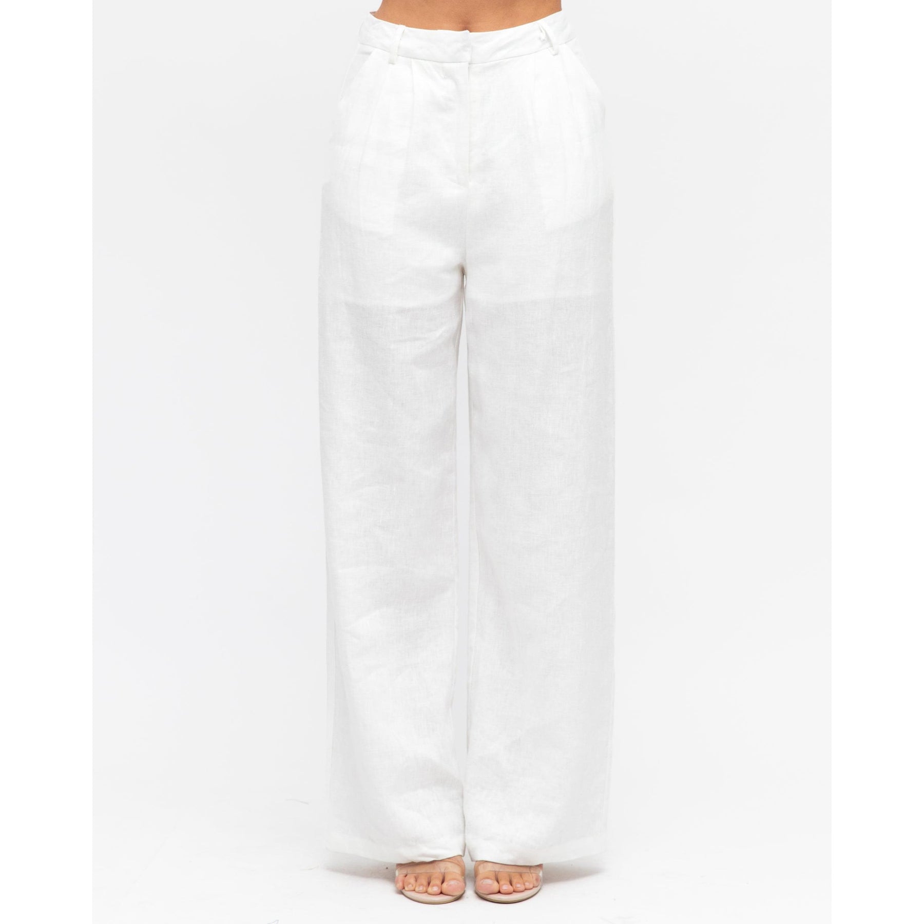 Timeless elegance meets modern tailoring in the Solea White Linen Pants. Crafted from 100% pure linen, these trousers are designed to keep you cool and polished from sunrise to sunset. Featuring a high-rise waist, a clean front, and a streamlined silhouette, the Solea brings effortless sophistication to everyday dressing. Whether styled with a crisp button-down or a relaxed tank, these pants are your go-to for warm-weather refinement. Lightweight, breathable, and endlessly versatile. Solea is summer, tailored.