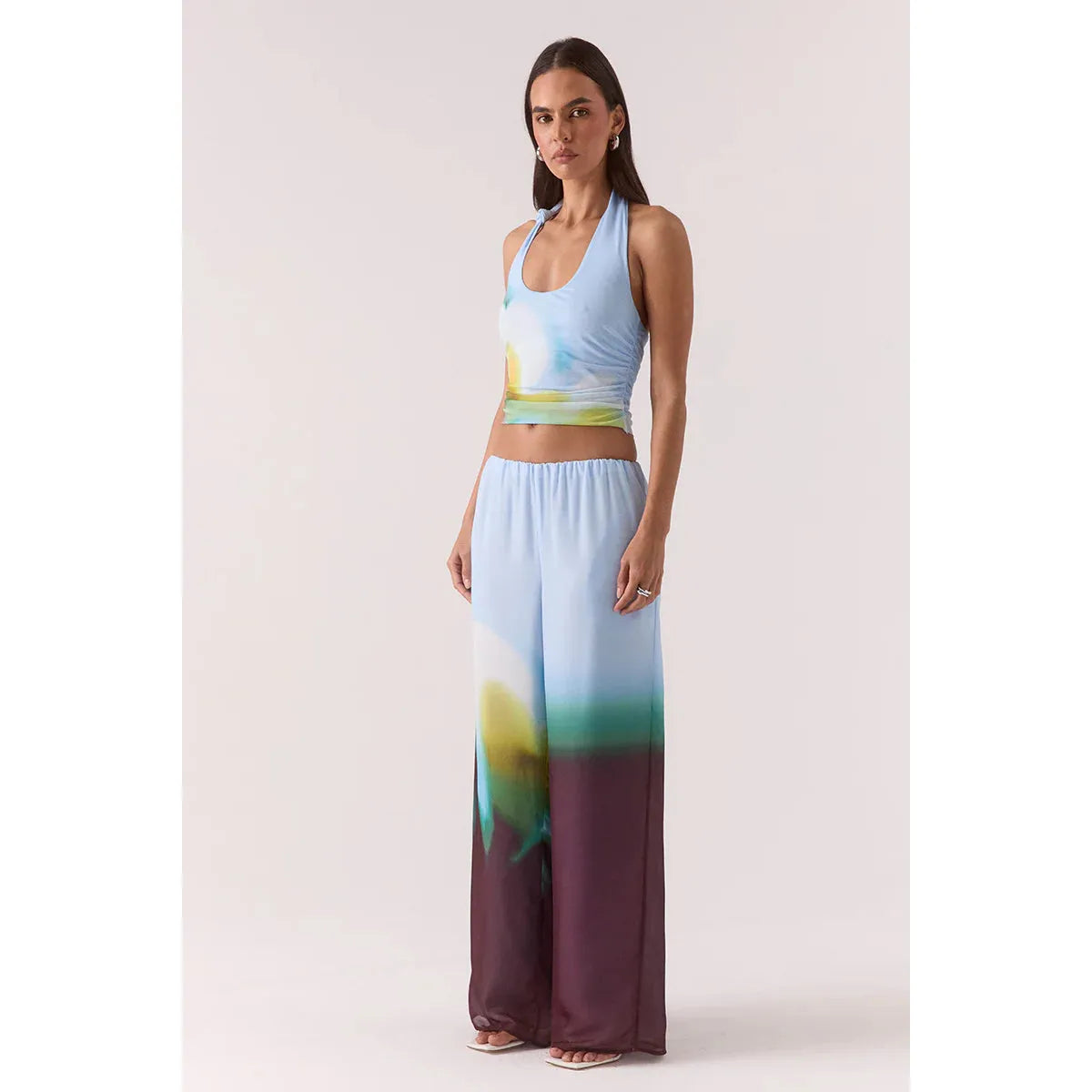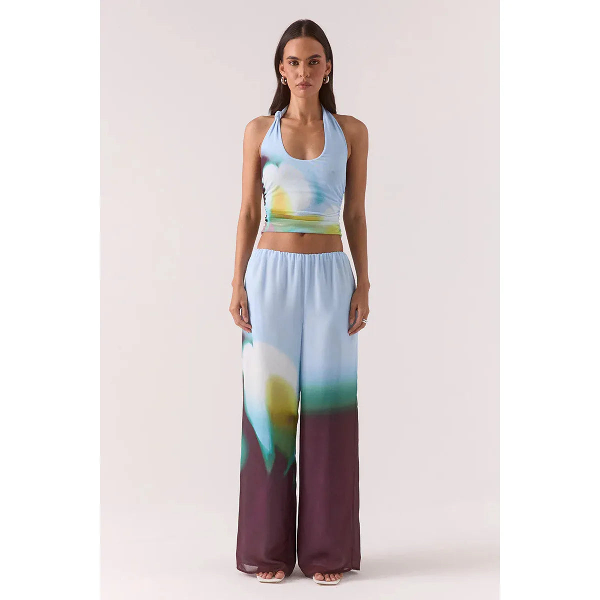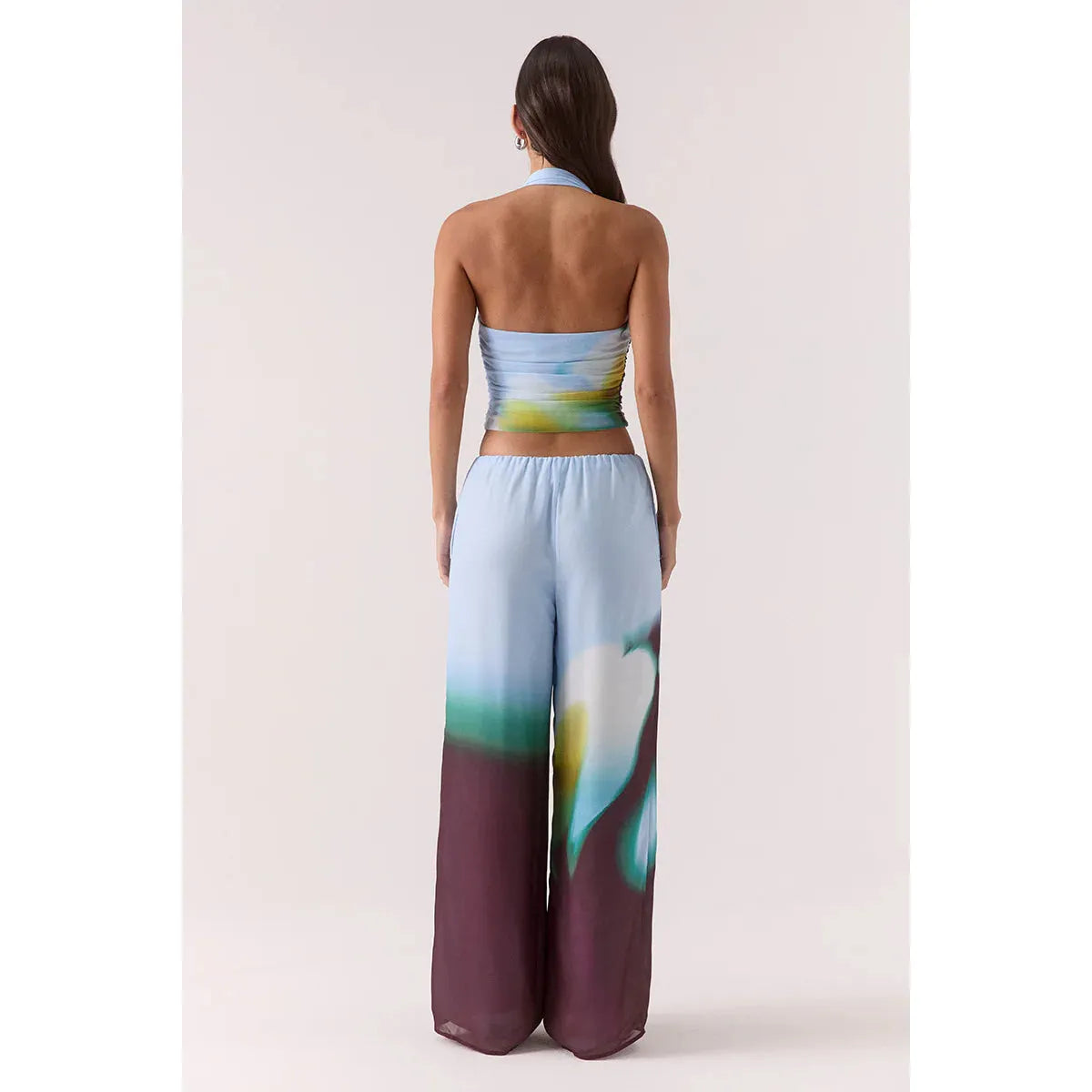 Exclusive print designed in-houseChiffon fabricationStraight leg pantElasticated waistSide concealed pocketsPull on functionFully lined