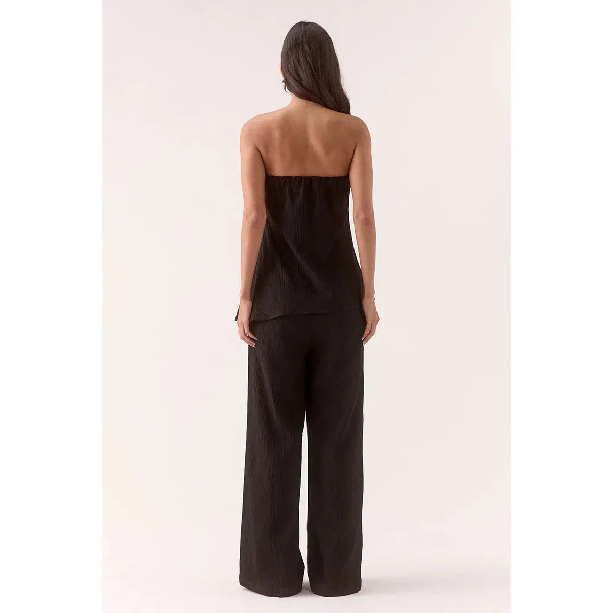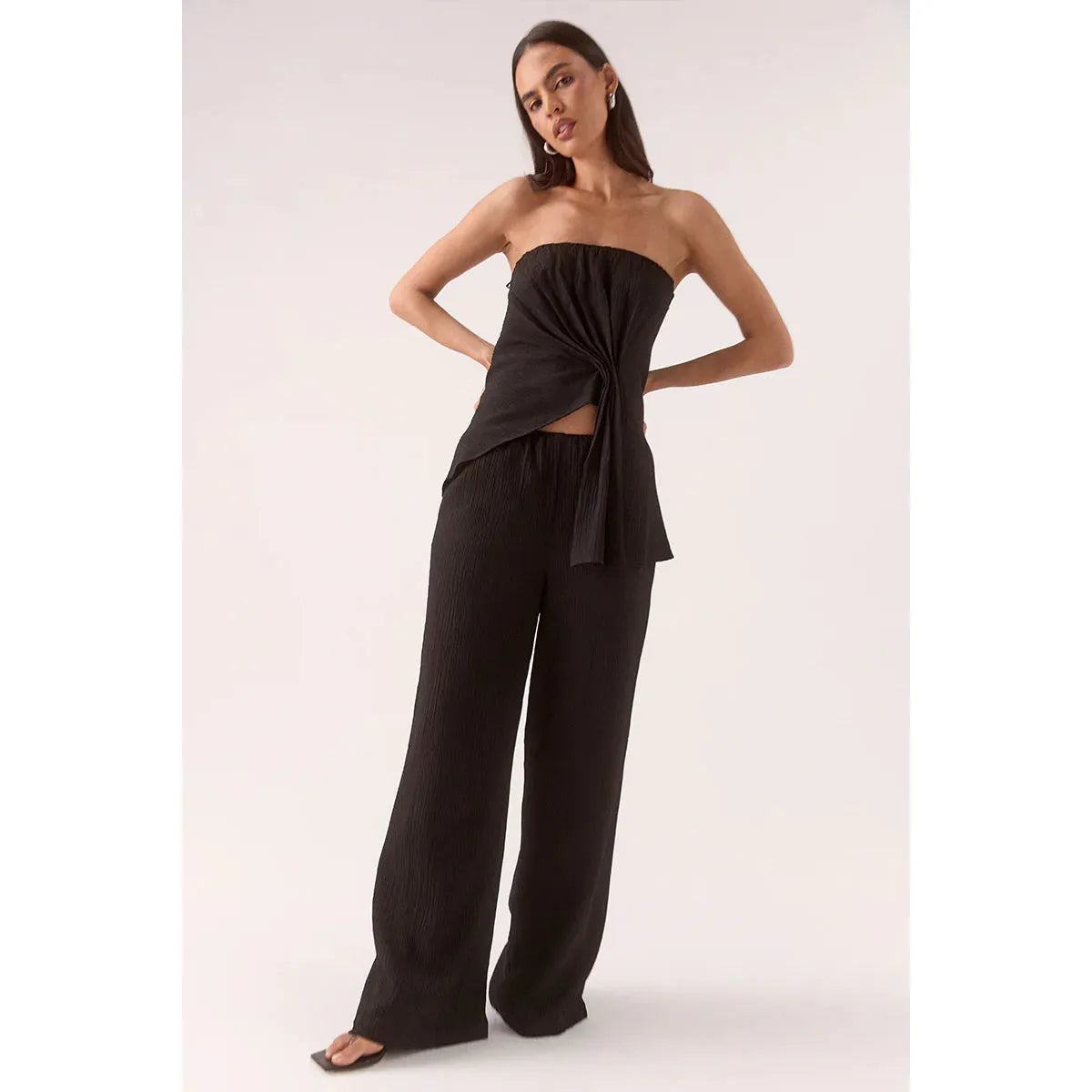 Textured crinkle fabricationStrapless topElasticated neckline edgePleated detail at waistAsymmetric hemSlip on functionFully lined