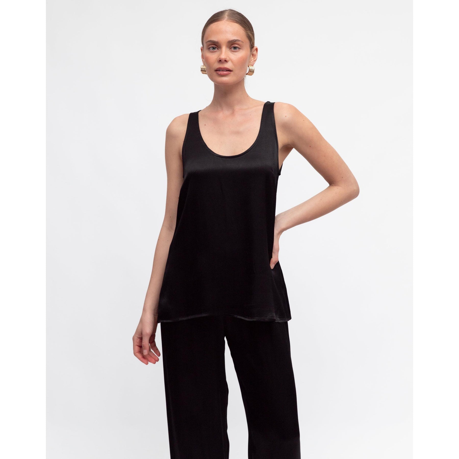 Elevate your essentials with the Cosmo Satin Tank, where smooth luxury meets minimalist design. Crafted from lustrous satin, this sleeveless tank features a flattering scoop neckline and a subtly tailored fit that skims the body with effortless grace. Whether layered under a blazer for polished office style or paired with jeans for a chic night out, the Cosmo Satin Tank adds a radiant sheen and timeless sophistication to any look. Lightweight, breathable, and endlessly versatile, your new go-to piece for day-to-night elegance.